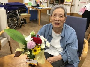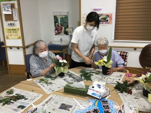 敬老の日をイメージしたフラワーアレンジメントを行いました。