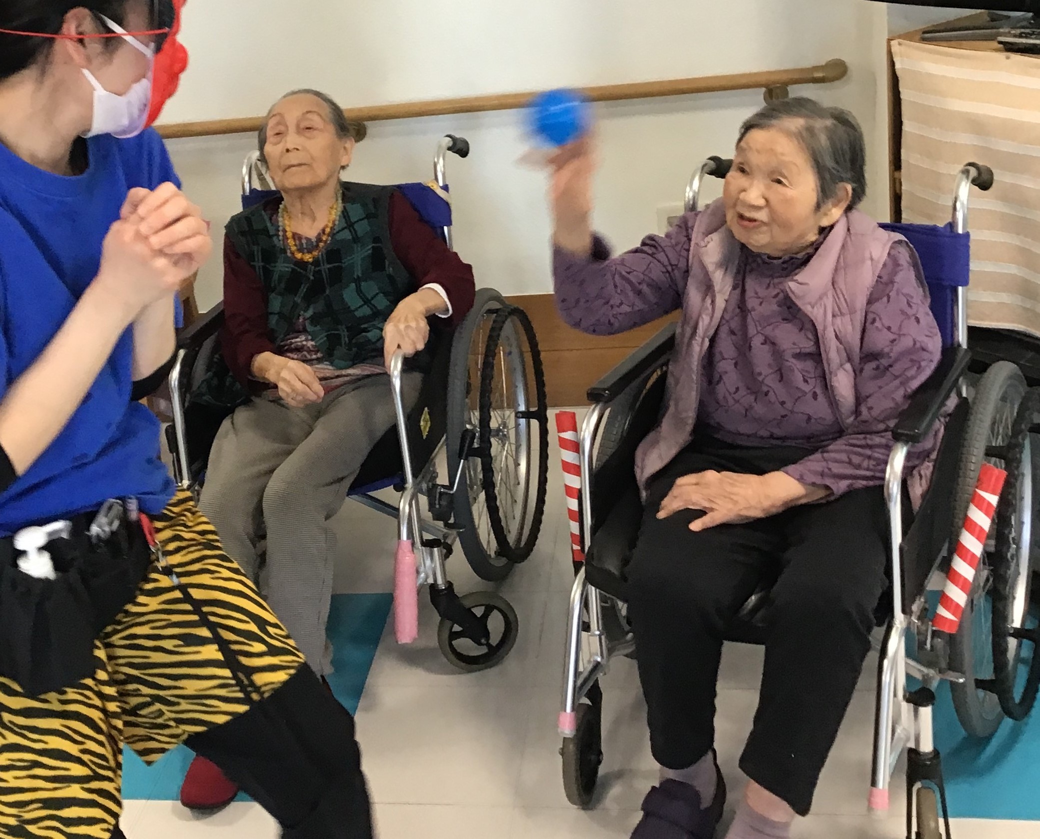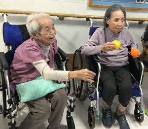 迎え討つ利用者様もボールを手に気合十分です!!
