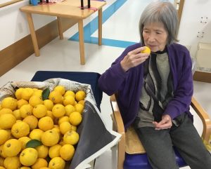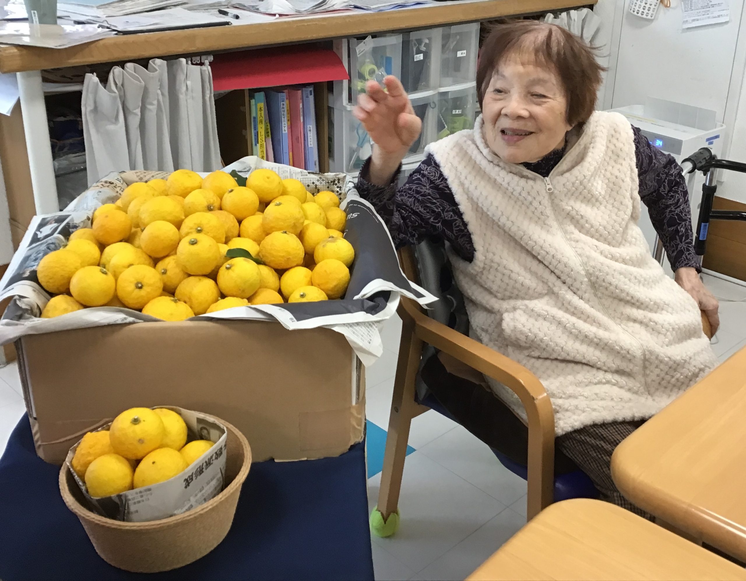 山盛りのゆずは、ご家族や職員からの寄付です。