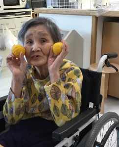 ゆずを手に「はいチーズ📷」