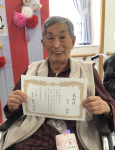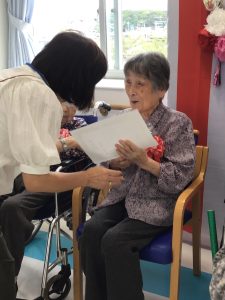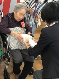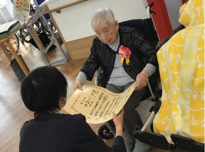 100歳以上の方には泉区役所の職員さんから、賞状と記念品の贈呈、お祝いの言葉をいただきました。