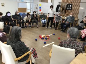 2月生まれの方のお祝いは皆さんでボッチャをして楽しみました。