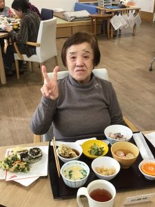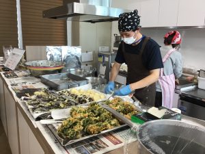 調理師さんにフロアで天ぷらを揚げていただきました。
