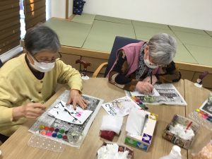 この日はカラオケ、絵手紙、麻雀です。
