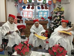 コーラス好きな利用者様をお誘いして、「きよしこの夜」や「諸人こぞりて」などのクリスマスソングを歌いました♪